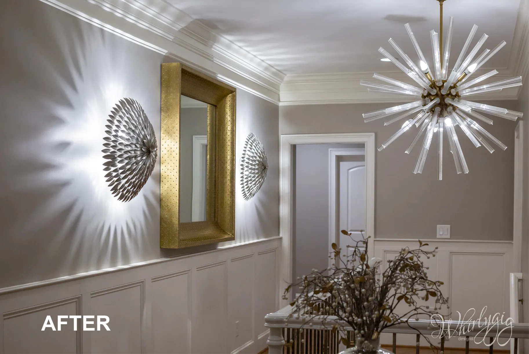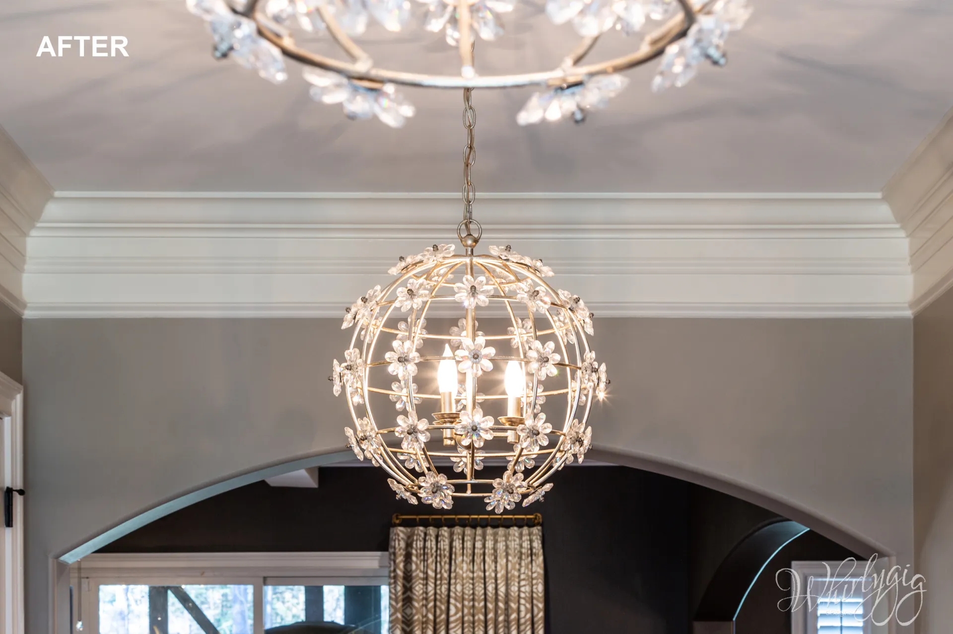 This project definitely grew legs little by little. Anyone who knows me knows my passion is lighting-it can transform a space. However, dipping your toe into this arena should come with a warning label: could be expensive! Once you replace one fixture you want to replace another, then another, then another! This project is the perfect example: we had targeted fixtures to replace and fixtures to keep… but by the time we were done we had replaced them all! However, the end result is nothing short of amazing. I think someone caught my passion for lighting-this home is anything but builder basic now!