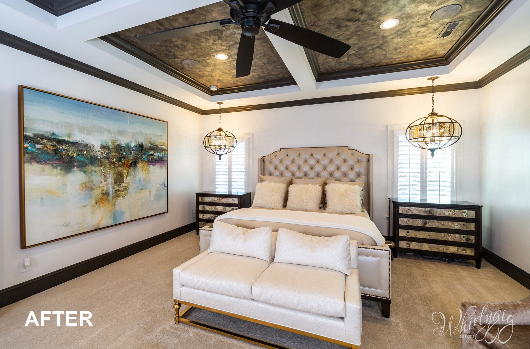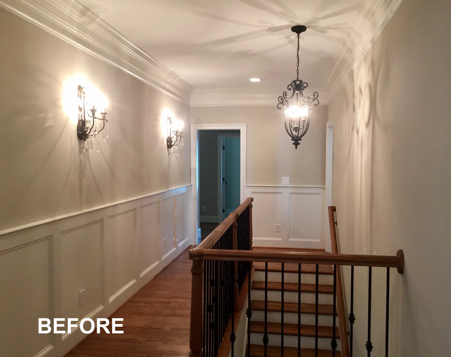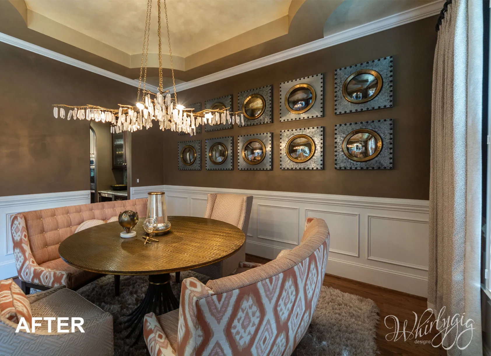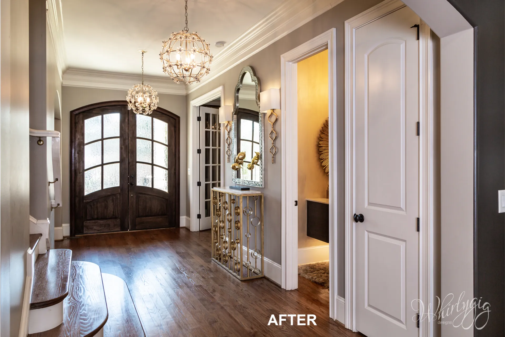 Ever wonder what could happen to a “simple” builder spec house just by changing out the inexpensive light fixtures, painting and adding in some quality furnishings and decor? THIS… THIS can happen! Talk about a transformation!