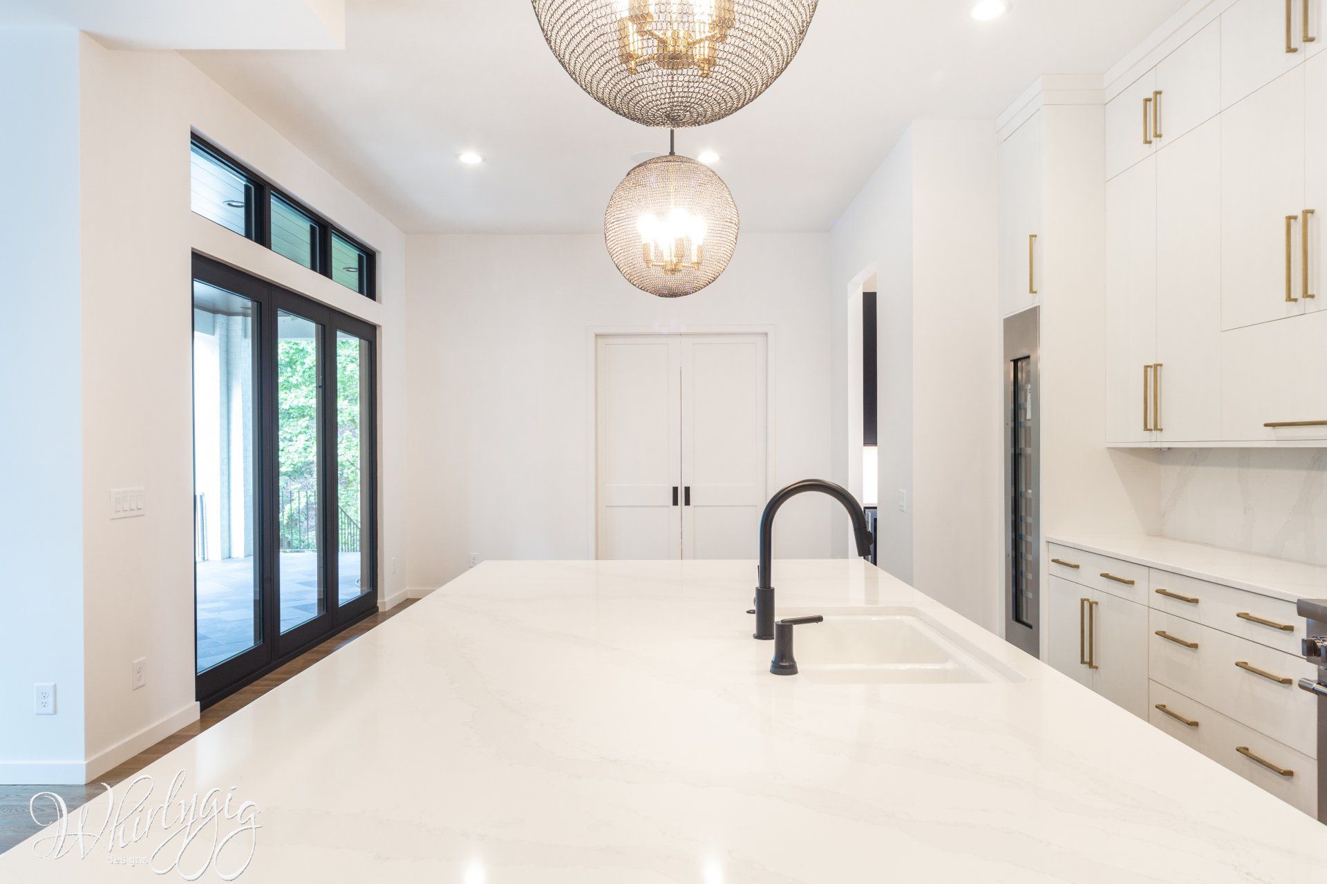 Here is another longstanding client that approached me to design their new custom home. While they currently lived in The Point they were searching for a vacant lot on Lake Norman to build their dream home. They found the perfect lot in a gated community within The Point on Bunker Way. The shape of the house itself is timelessly traditional but it’s the selections we’ve made that have steered this hard left and given this home a sleek, crisp contemporary edge. With nearly 8,000sf of living space this house is made for entertaining: day on the lake, evening around the pool and grill and then after hours in the lounge…